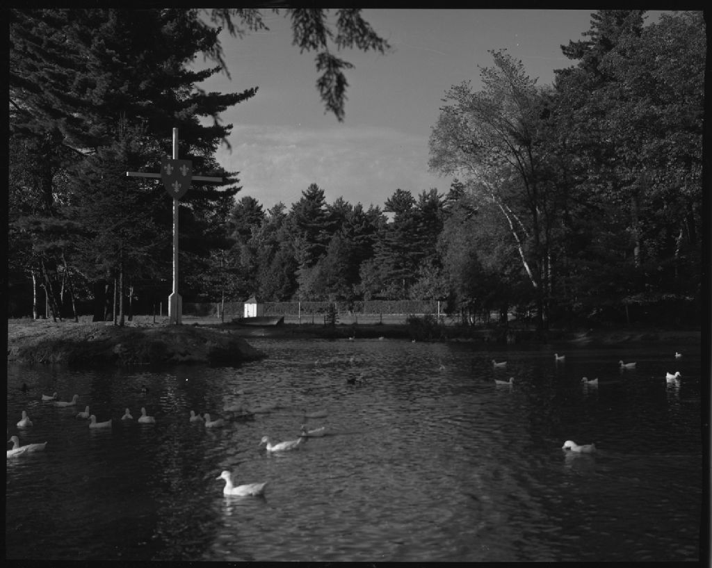Les canards sur l'étang de la ferme "Tonnancour", propriété des Frères de l'Instruction chrétienne à Pointe-du-Lac, comté de Saint-Maurice