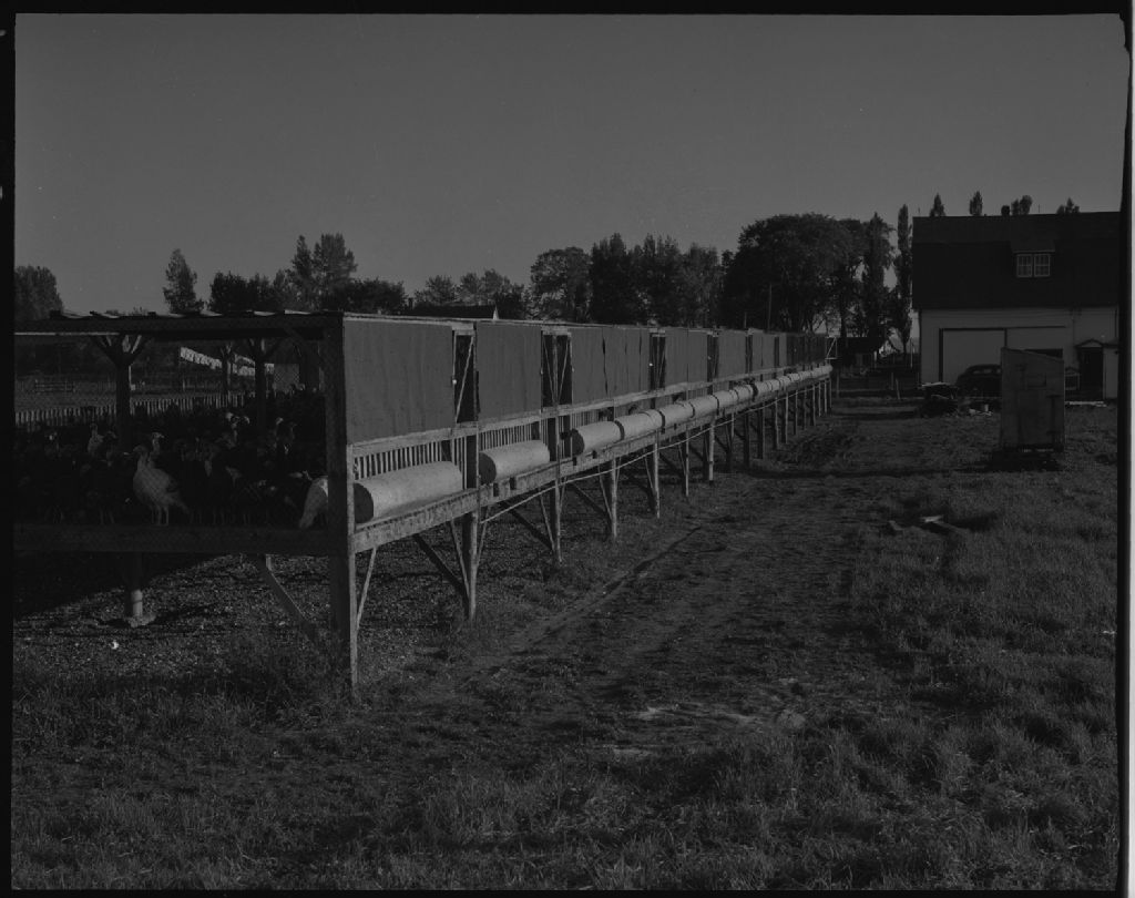 Élevage de dindes sur treillis à la ferme de la Fraternité sacerdotale à la Pointe-du-Lac, comté de Saint-Maurice