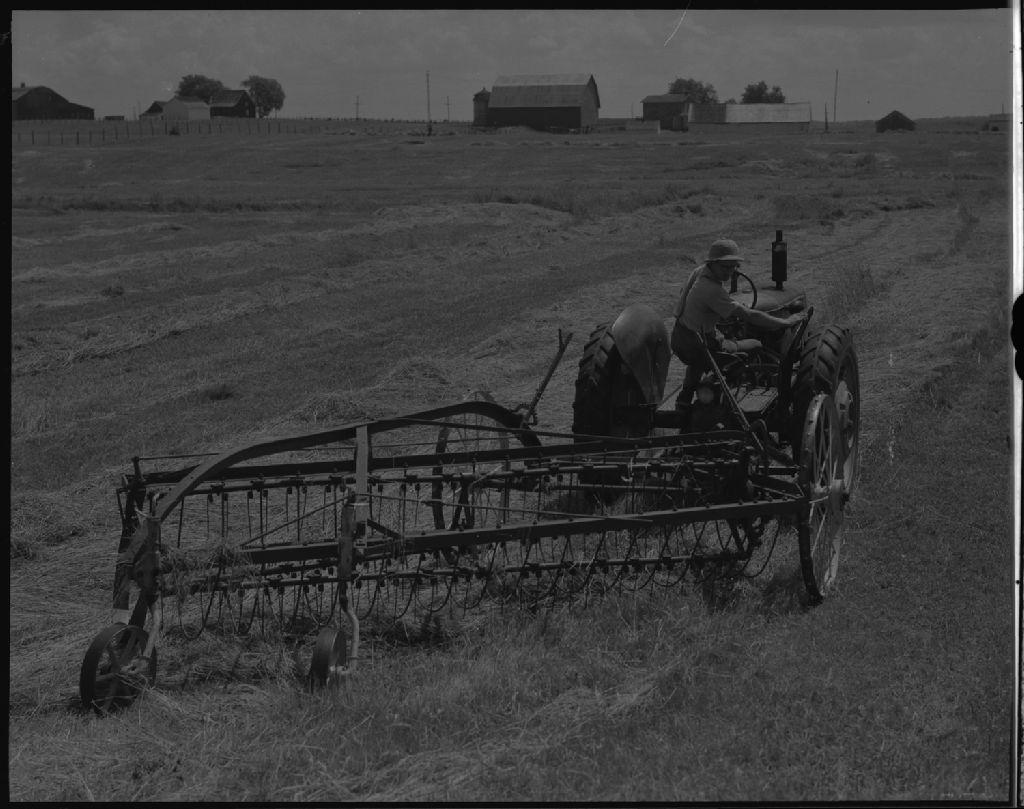 Râclage du foin avec un rateau fileur chez monsieur Jean-Paul Julien à Cap-Santé, comté de Portneuf