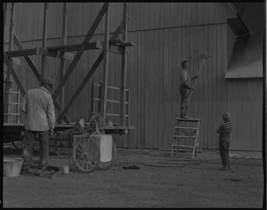 Blanchissage de la grange au vaporisateur chez monsieur Adjutor Lanouette de Notre-Dame-du-Nord, comté de Témiscamingue