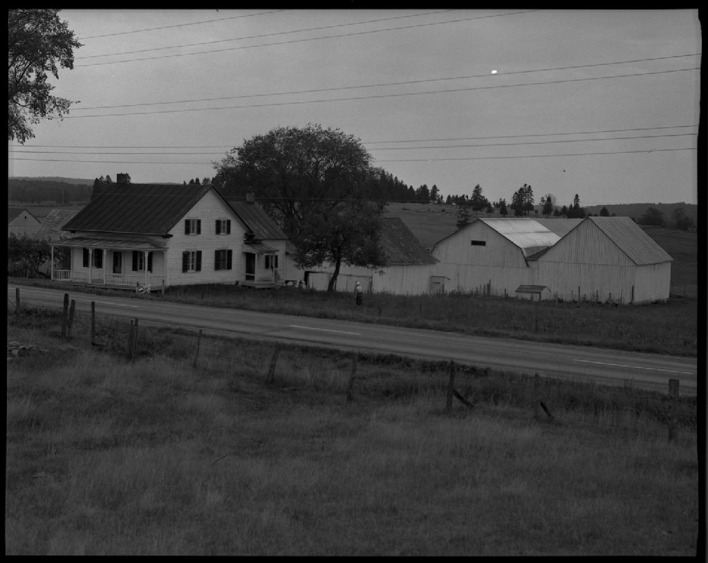 Vue d'ensemble de la ferme de monsieur Laurent Gingras à Saint-Gabriel-de-Brandon, comté de Berthier, 1953, Archives nationales à Québec, Fonds Ministère de la Culture et des Communications, (03Q,E6,S7,SS1,D2,P97226), Omer Beaudoin.