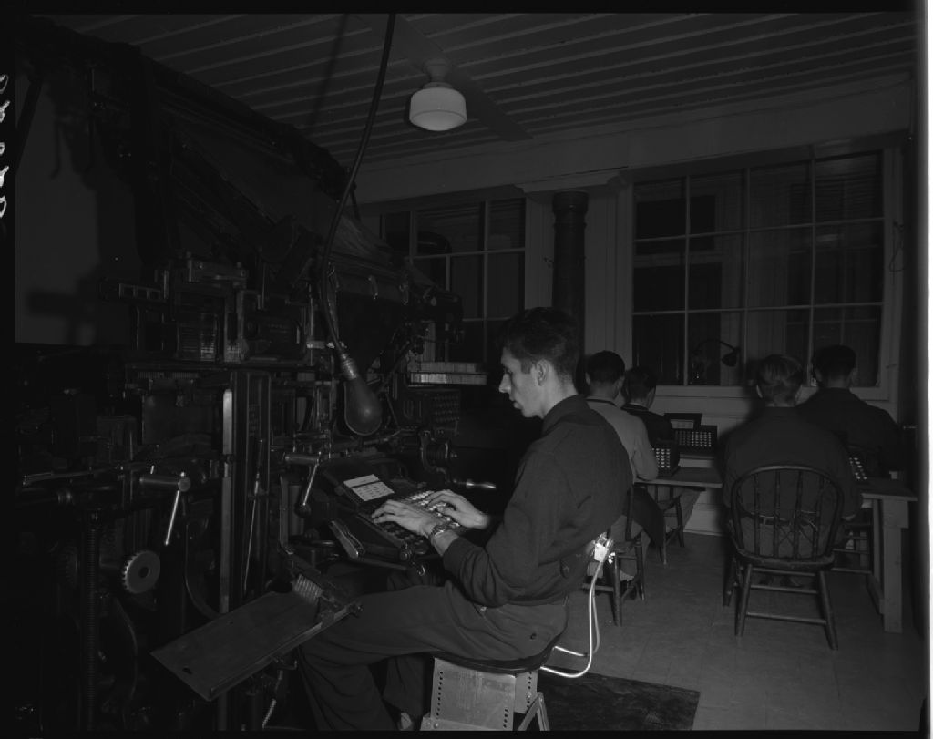 [Étudiants en imprimerie], [1953?], Archives nationales à Québec, Fonds Ministère de la Culture et des Communications, (03Q,E6,S7,SS1,D2,P97279), Photographe non identifié.