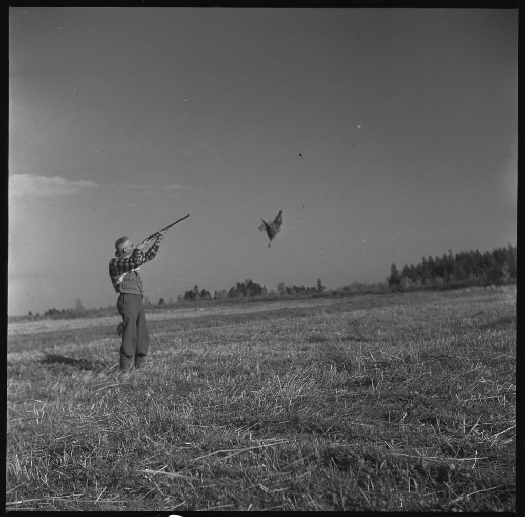 Chasse au faisan à Saint-Jean, Île d'Orléans, 1953, Archives nationales à Québec, Fonds Ministère de la Culture et des Communications, (03Q,E6,S7,SS1,D2,P97377), Gustave Bédard.