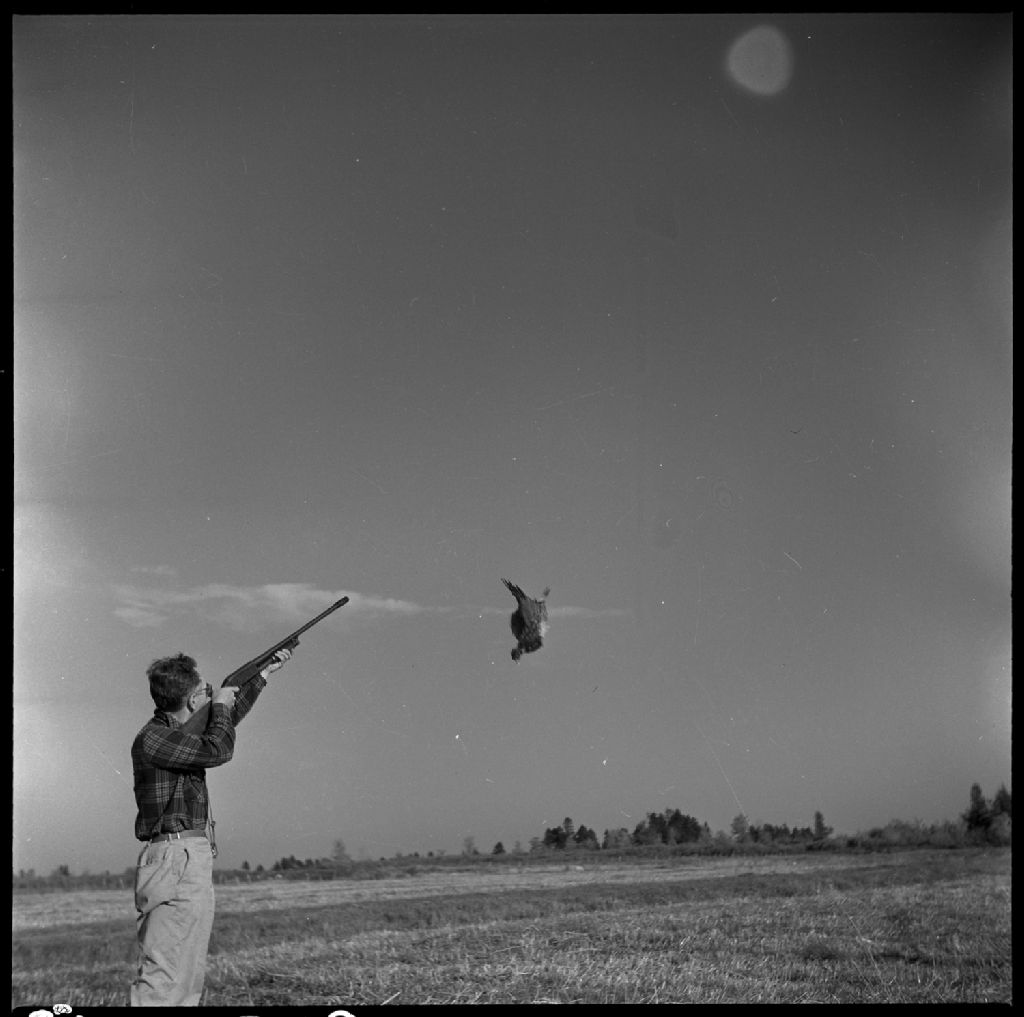 Chasse au faisan à Saint-Jean, Île d'Orléans, 1953, Archives nationales à Québec, Fonds Ministère de la Culture et des Communications, (03Q,E6,S7,SS1,D2,P97381), Gustave Bédard.