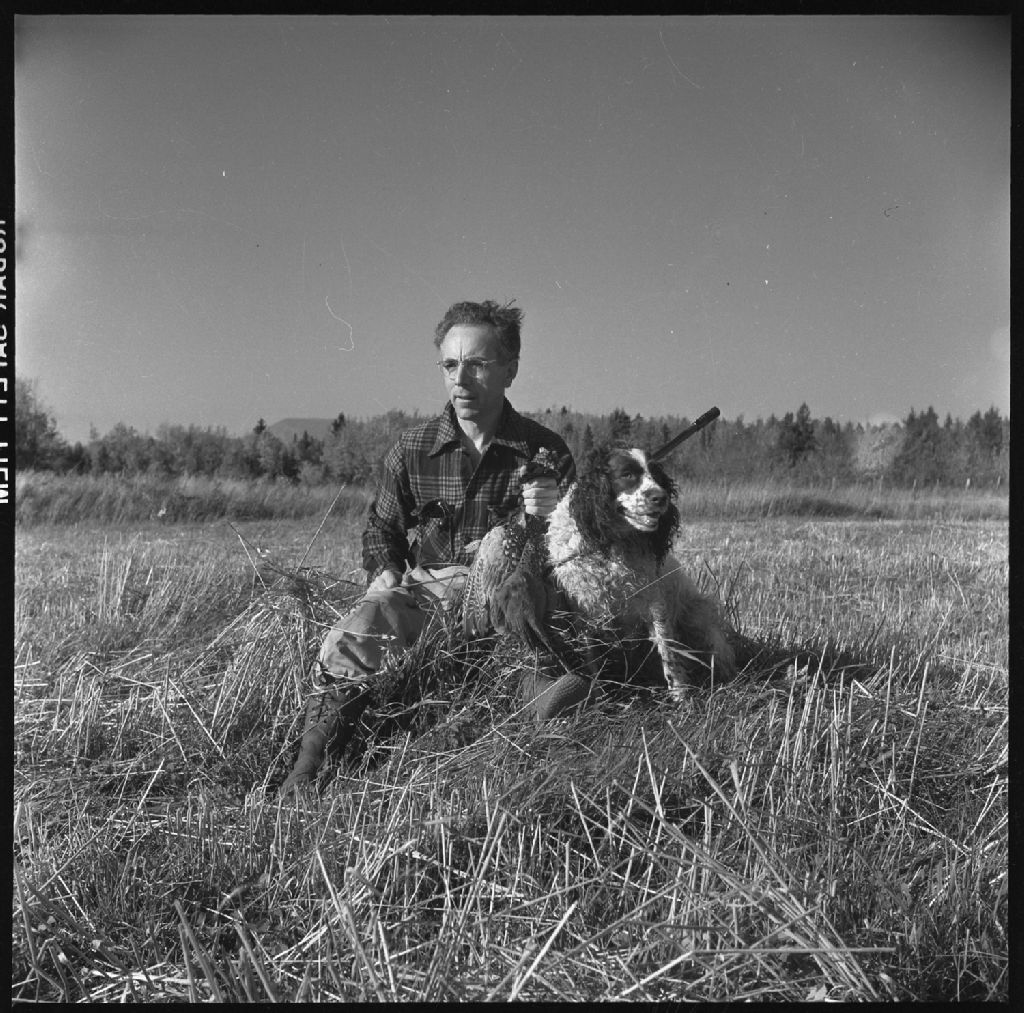 Monsieur Eustache Marier à la chasse au faisan à Saint-Jean, Île d'Orléans, 1953, Archives nationales à Québec, Fonds Ministère de la Culture et des Communications, (03Q,E6,S7,SS1,D2,P97383), Gustave Bédard.