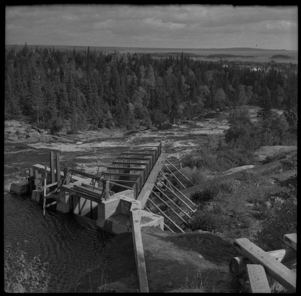 Rivière Riverin, comté Saguenay, canton Fitzpatrick, projet B et A, 1953, Archives nationales à Québec, Fonds Ministère de la Culture et des Communications, (03Q,E6,S7,SS1,D2,P97426), René Robitaille.