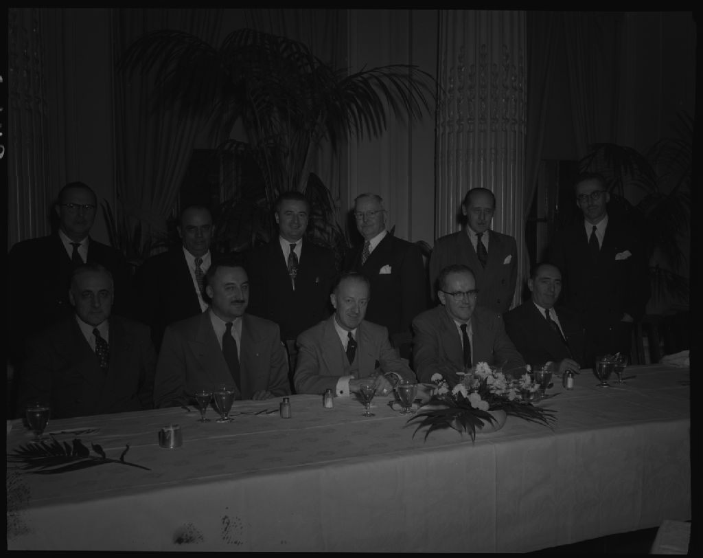 [Groupe d'hommes à la table d'honneur], [1953?], Archives nationales à Québec, Fonds Ministère de la Culture et des Communications, (03Q,E6,S7,SS1,D2,P97603), Photographe non identifié.