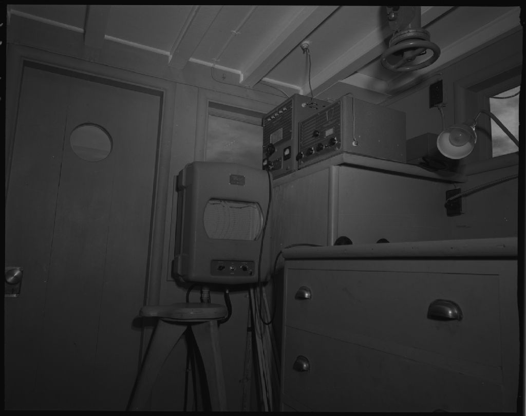 La cabine du pilote sur l'Astrid, un bateau de pêche du Département des Pêcheries à Gaspé