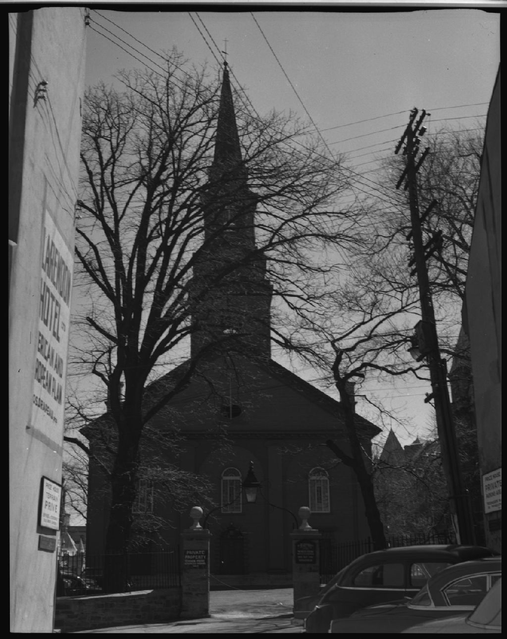La cathédrale anglicane Holy Trinity à Québec, 1954, Archives nationales à Québec, Fonds Ministère de la Culture et des Communications, (03Q,E6,S7,SS1,D2,P98086), J.W.Michaud.