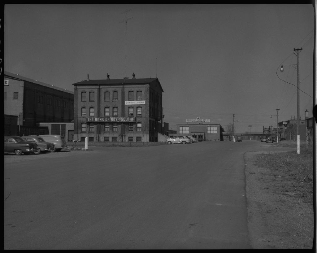 Bank of Nova Scotia, Dominion Lingerie, Champlain Paper Box Products, Centre industriel Saint-Malo, Québec, 1954, Archives nationales à Québec, Fonds Ministère de la Culture et des Communications, (03Q,E6,S7,SS1,D2,P98135), J.W.Michaud.