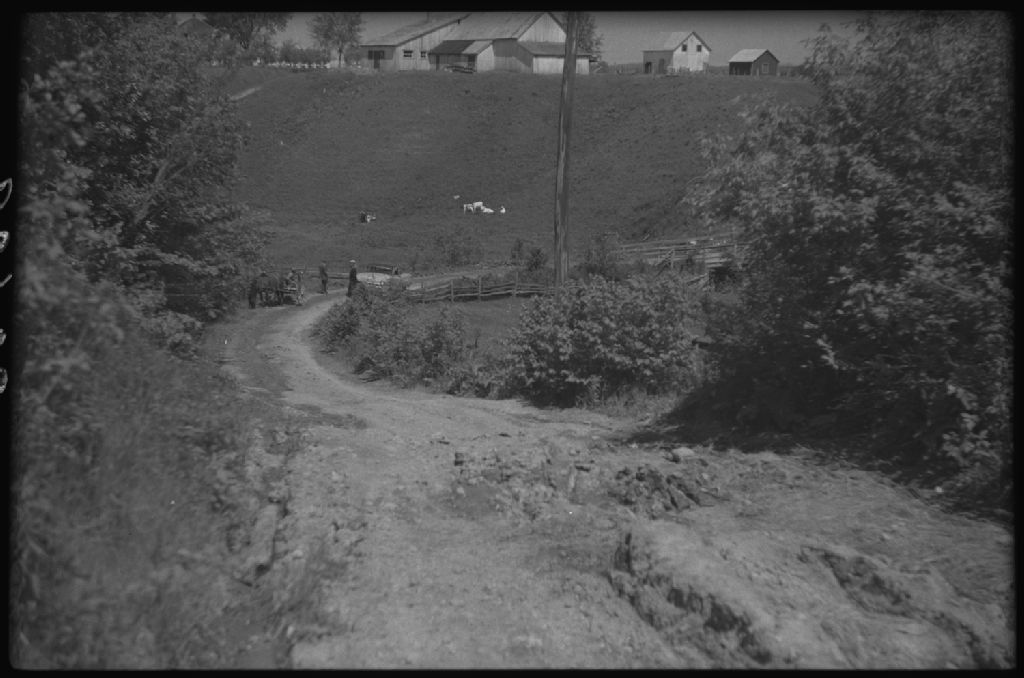 [Chemin de terre avec voiture et cheval attelé]