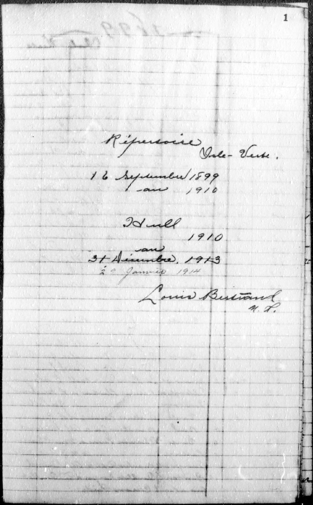 Louis Bertrand, 1899-1936, Archives nationales à Gatineau, Fonds Cour supérieure. District judiciaire de Hull. Greffes de notaires, (07H,CN701,S3).