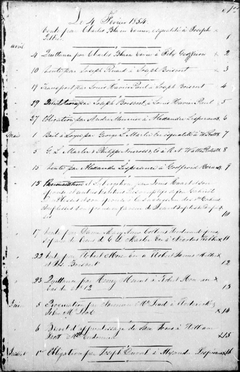 - Comprend des documents de grand format accompagnant l¿acte suivant :N¿ 3704 (28 février 1868 - Cession par F.R. Tranchemontagne à Tancrède Sauvageau, syndic officiel) : État des meubles achetés par M. Tranchemontagne pour Madame Tranchemontagne durant l'année 1864, 1865, 1866 & 1867 ; Insolvent Act of 1864 In the matter of F.R. Tranchemontagne, an insolvent, Schedule of Creditors -- 2 documents, 4 pages -- 26,5 x 43 cm et 54,5 x 66,5 cm