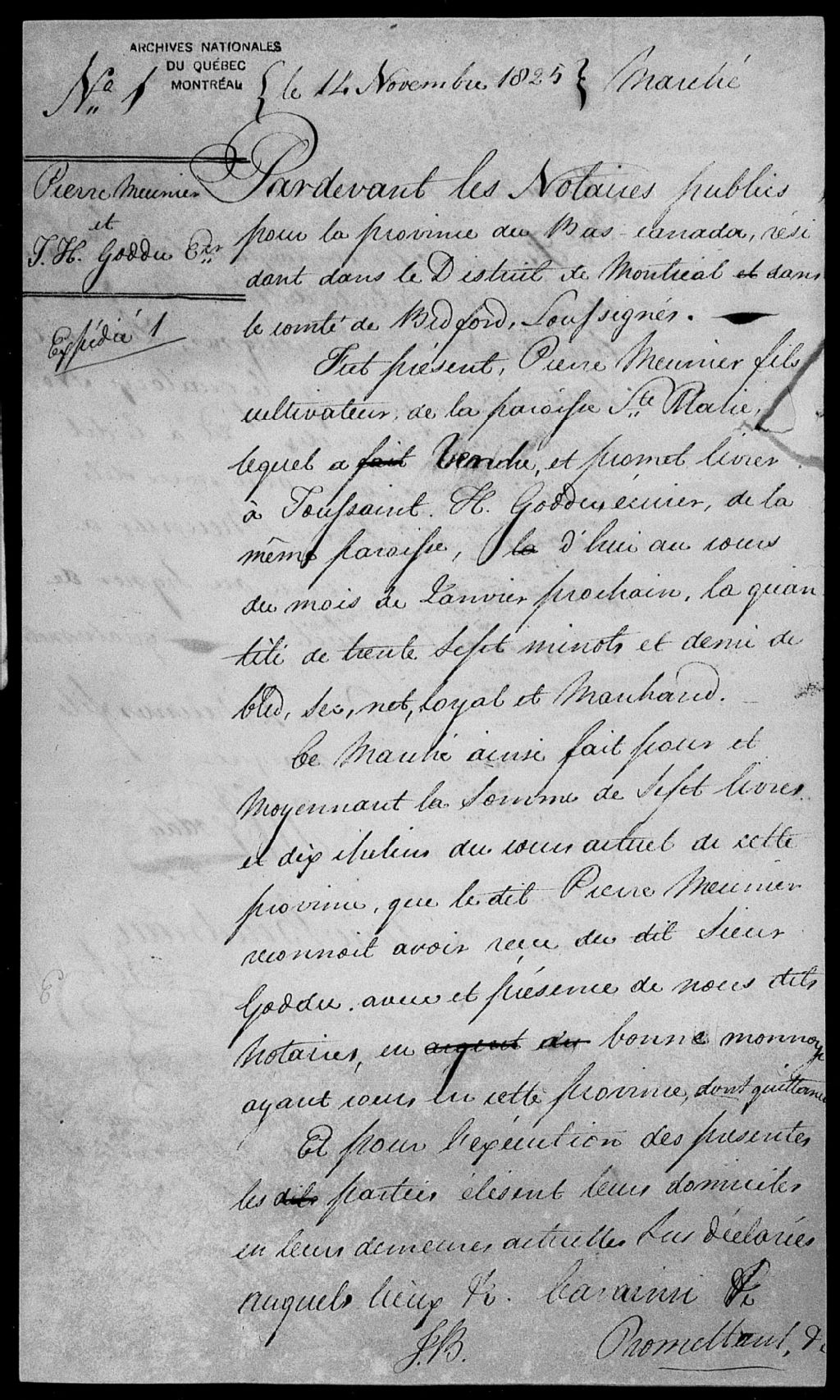 Isaïe-Joseph Boudreau, 1825-1839, Archives nationales à Montréal, Fonds Cour supérieure. District judiciaire de Saint-Hyacinthe. Greffes de notaires, (06M,CN602,S10).