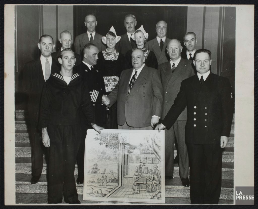 - Le dossier illustre le capitaine du navire hollandais "Maasdam", accompagné notamment de Camillien Houde