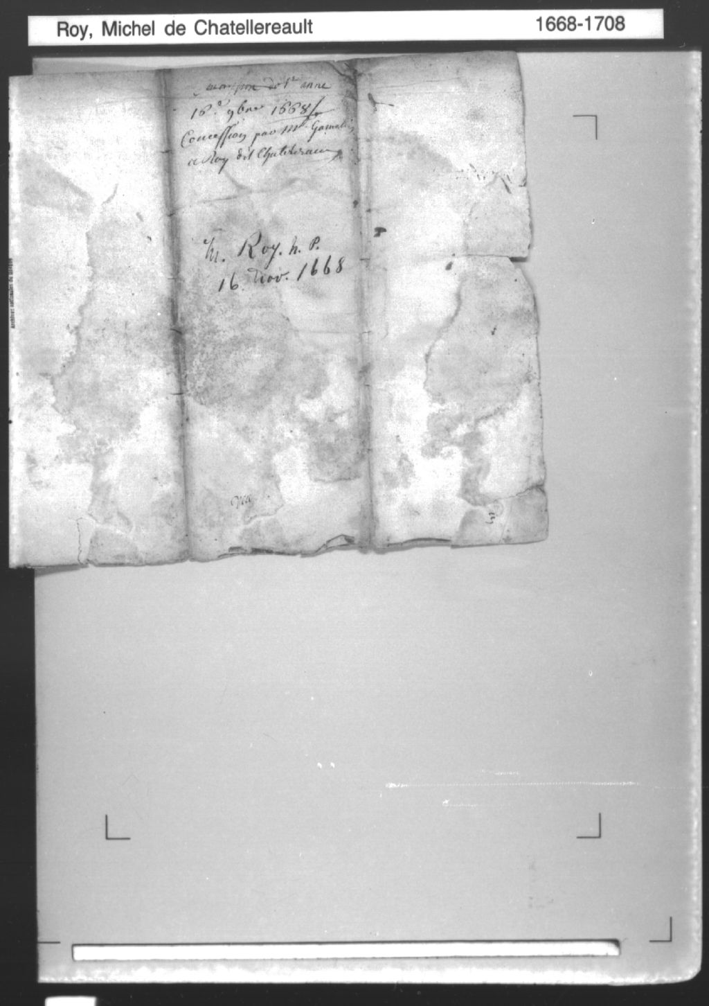 - Cette série regroupe 367 minutes notariales du greffe de Michel Roy de Châtellereault. Il n'y a aucune minute du 10 juin 1682 au 2 janvier 1687 inclusivement.De 1668 à 1708, le notaire Roy de Châtellereault a exercé à Sainte-Anne-de-la-Pérade (du 16 novembre 1668 au 8 mars 1708).Prises dans leur ensemble, les données colligées dans ces documents officiels à contenu administratif et légal peuvent constituer une source documentaire des plus révélatrices sur le mode et les conditions de vie de la population pendant cette période (métiers et professions mentionnés aux contrats, inventaires de biens, testaments), sur les classes sociales (mention de titres correspondant au rang social des parties concernées tels bourgeois, écuyer, etc), sur les moeurs et coutumes acceptées par la société et ses institutions (par le biais de déclarations, de jugement arbitral, d'injonctions, d'ordonnances, etc), et, dans une proportion moindre, sur la médecine d'époque et ses représentants.Enfin, la terminologie utilisée dans ces contrats notariés pourrait être avantageusement récupérée dans le cadre d'études portant sur l'évolution du langage administratif et légal, voire même sur l'évolution de la langue française