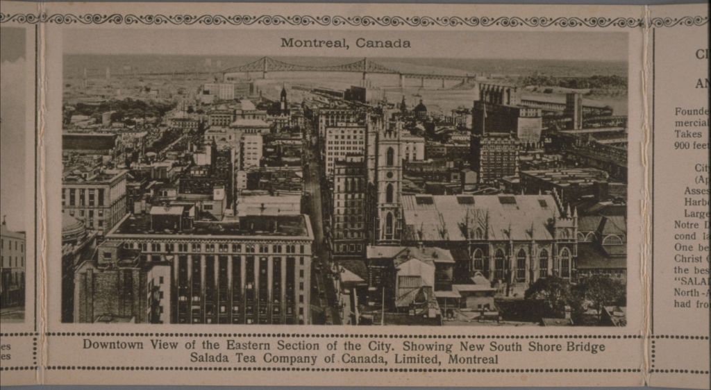 Montreal, Canada : downtown view of the eastern section of the city showing new South Shore bridge, Salada Tea Company of Canada Limited, Montreal