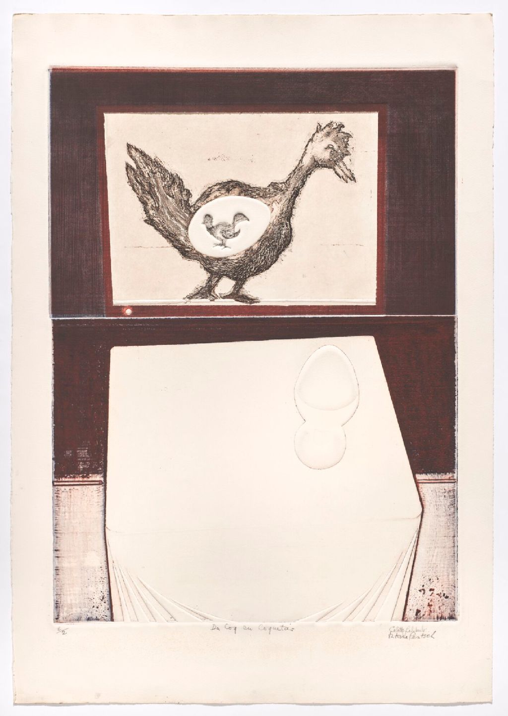 1 estampe : eau-forte en couleur, gaufrure et assemblage, sur papier vélin crème ; feuille 76 x 53 cm