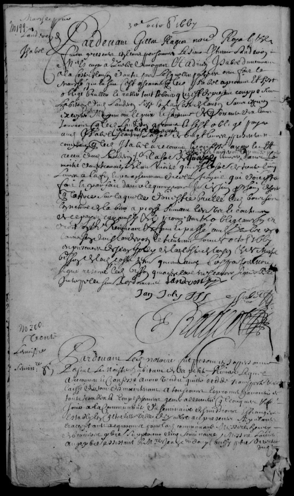 Gilles Rageot, 1666-1691, Archives nationales à Québec, Fonds Cour supérieure. District judiciaire de Québec. Greffes de notaires, (03Q,CN301,S238).