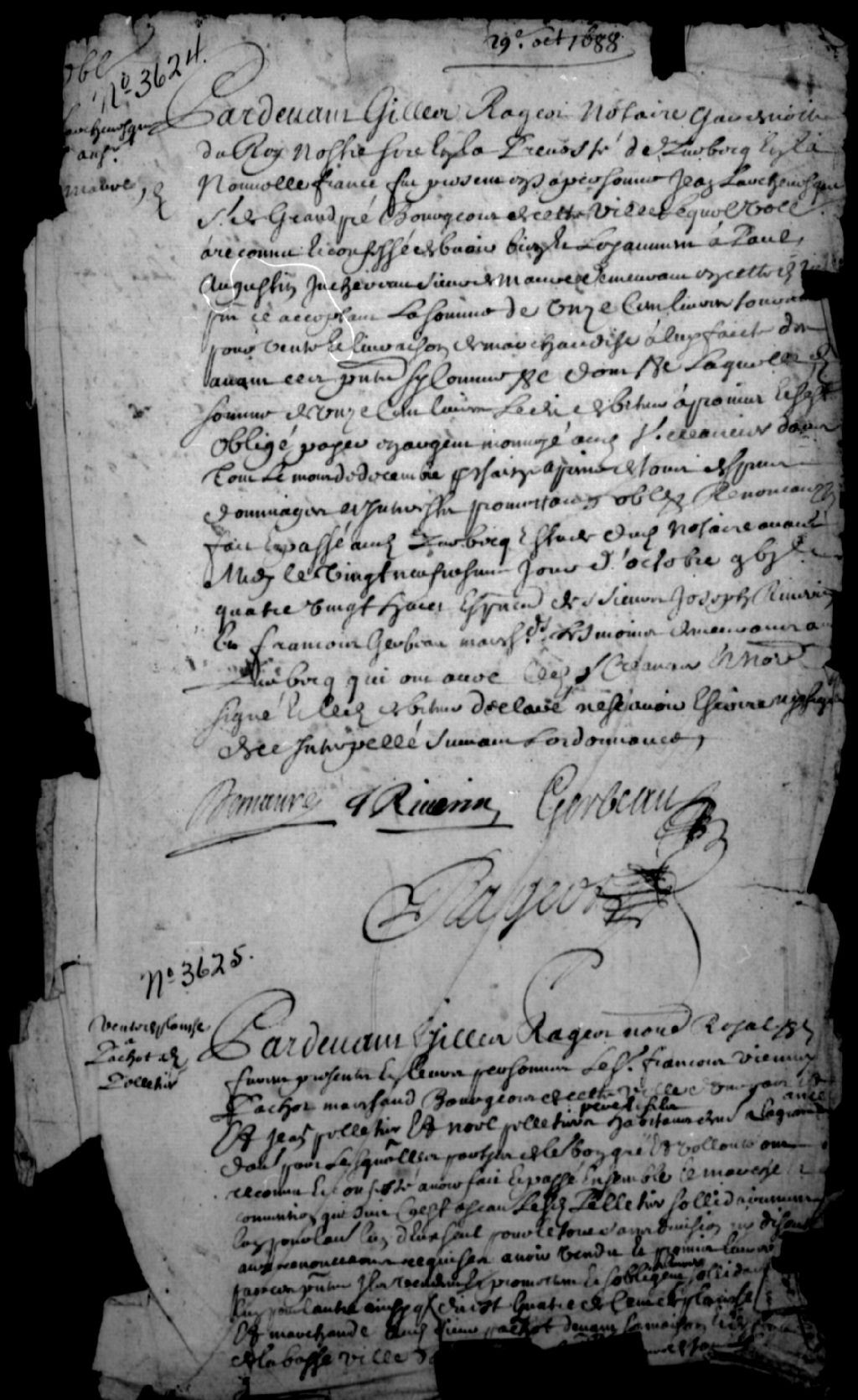 Gilles Rageot, 1666-1691, Archives nationales à Québec, Fonds Cour supérieure. District judiciaire de Québec. Greffes de notaires, (03Q,CN301,S238).
