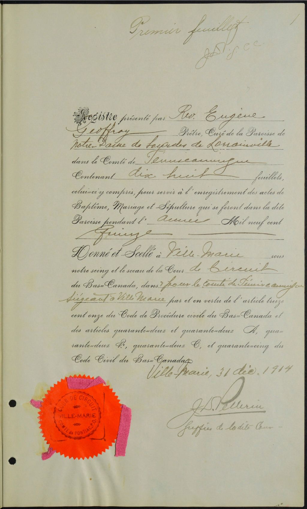 Notre-Dame-de-Lourdes-de-Lorrainville, 1909-1918, Archives nationales à Rouyn-Noranda, Fonds Cour supérieure. District judiciaire de Témiscamingue. État civil, (08Y,CE802,S5).
