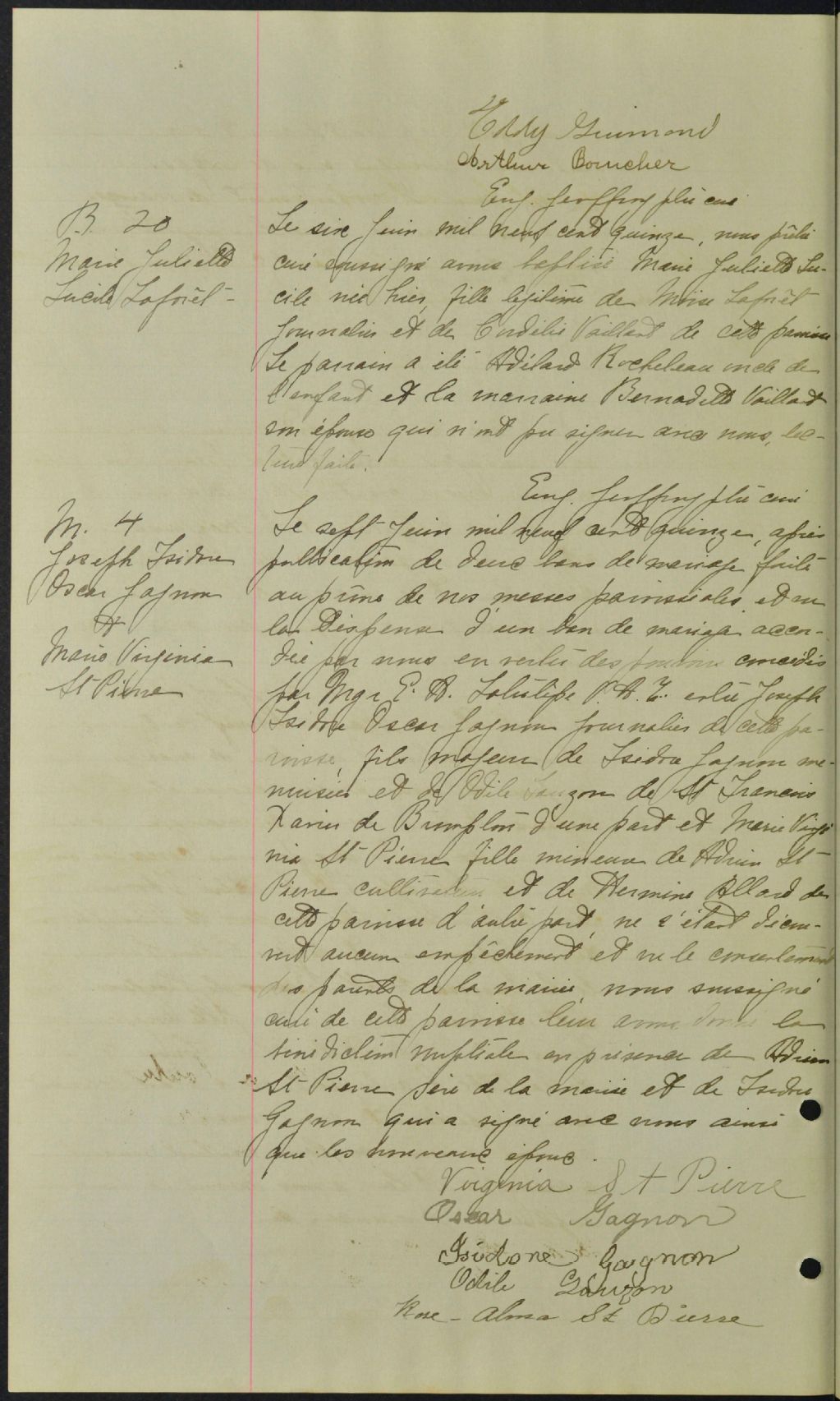 Cette série regroupe les registres originaux de l'état civil, lesquels contiennent les enregistrements de baptêmes, mariages et sépultures de la paroisse de Notre-Dame-de-Lourdes-de-Lorrainville