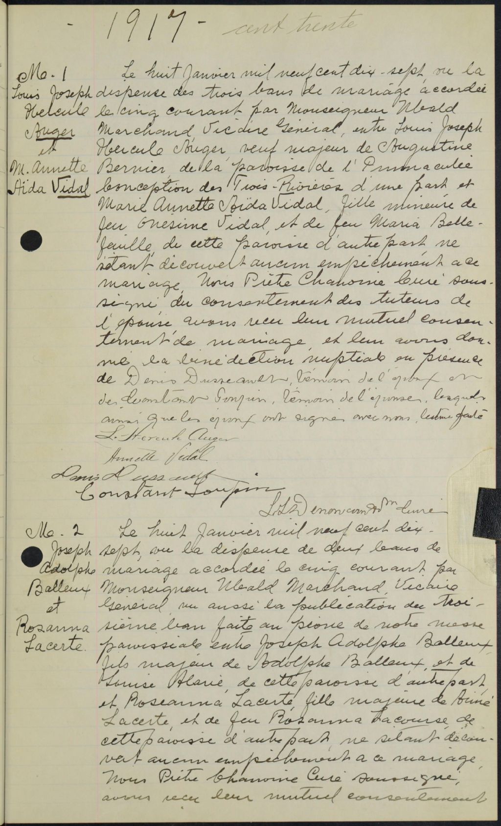 Saint-Philippe, 1909-1920, Archives nationales à Trois-Rivières, Fonds Cour supérieure. District judiciaire de Trois-Rivières. État civil, (04T,CE401,S63).