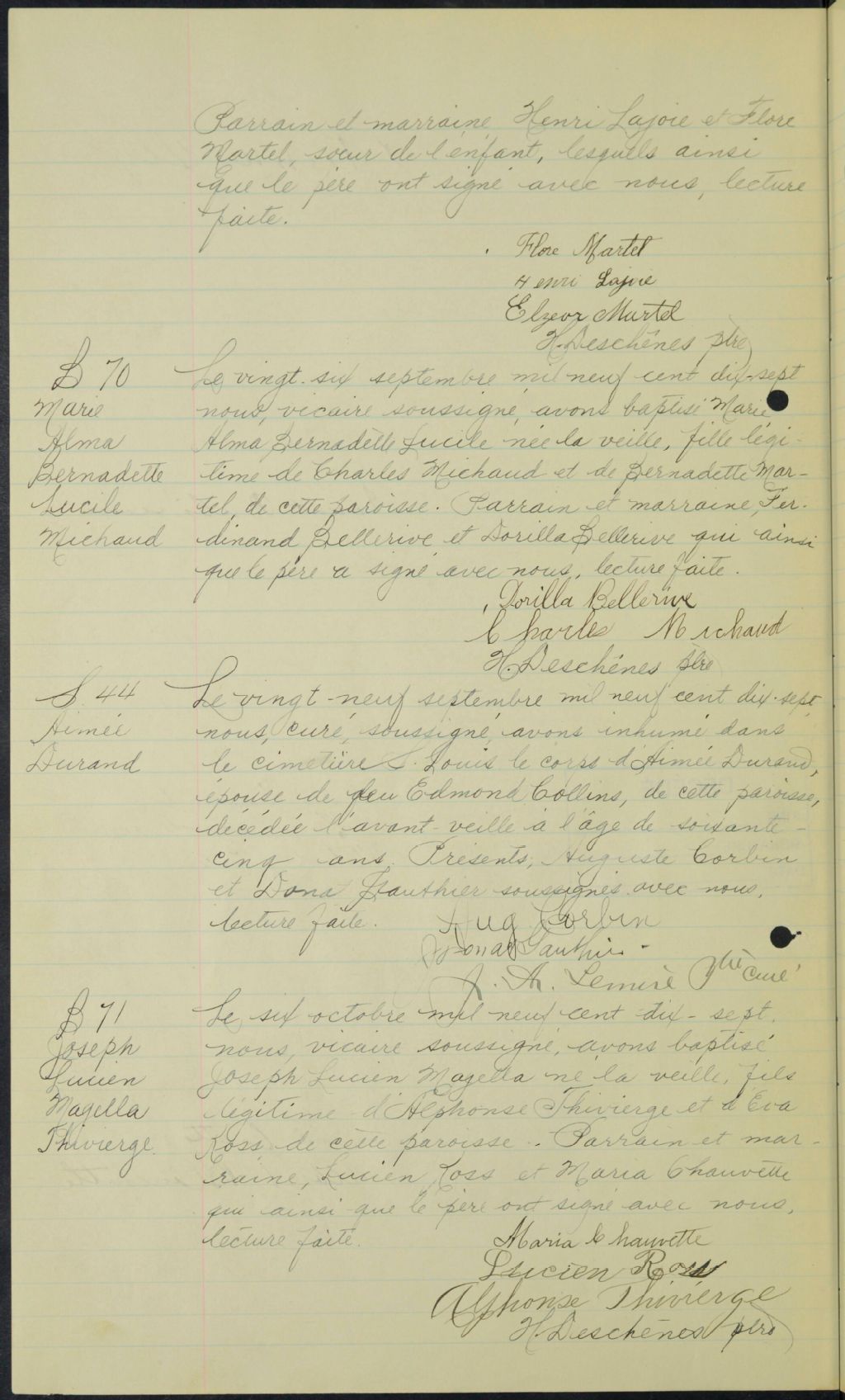 Sainte-Cécile de Trois-Rivières, 1914-1920, Archives nationales à Trois-Rivières, Fonds Cour supérieure. District judiciaire de Trois-Rivières. État civil, (04T,CE401,S65).