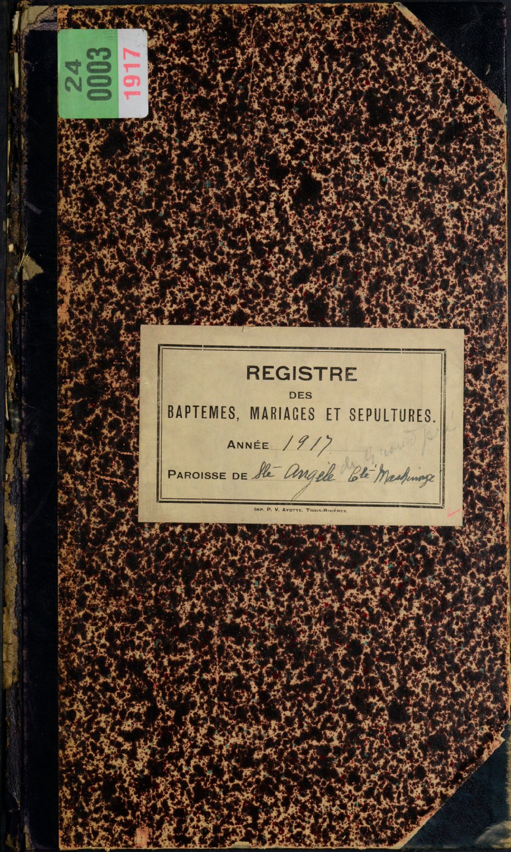 Sainte-Angèle, 1917-1920, Archives nationales à Trois-Rivières, Fonds Cour supérieure. District judiciaire de Trois-Rivières. État civil, (04T,CE401,S68).