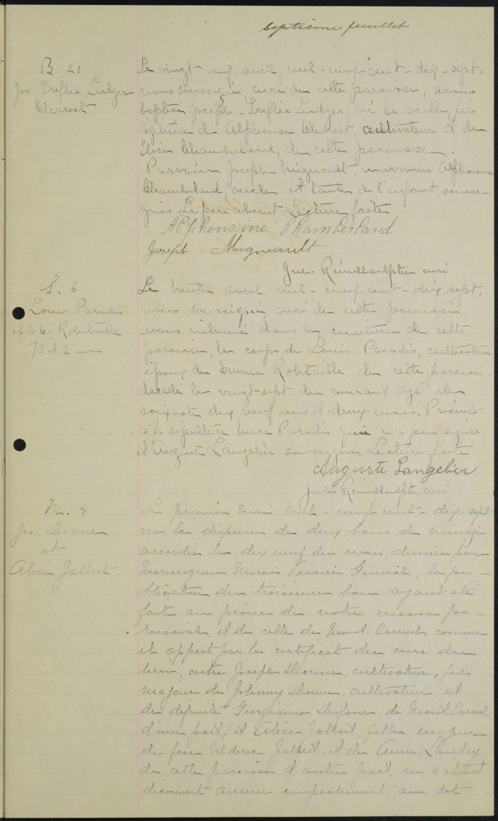 Saint-Bruno, 1893-1921, Archives nationales à Rimouski, Fonds Cour supérieure. District judiciaire de Kamouraska. État civil, (01R,CE104,S37).