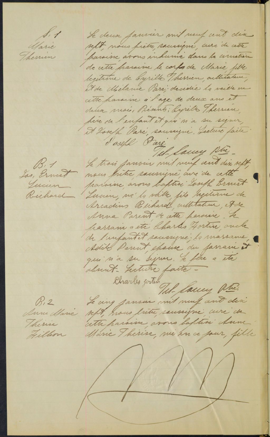 - Cette série regroupe les registres originaux de l'état civil, lesquels contiennent les enregistrements de baptêmes, de mariages et de sépultures consignés par le curé ou son représentant desservant la communauté de confession catholique de la paroisse Saint-Ludger. On retrouve également, en règle générale, un index nominatif à la fin de chaque registre.Le registre de 1918 comprend quelques actes de la paroisse de Saint-Hubert de Spaulding (CE503,S19)Avant 1876, voir Saint-Samuel de Gayhurst (CE503,S13). Pour 1913, voir aussi Saint-Hubert de Spaulding (CE503,S19)