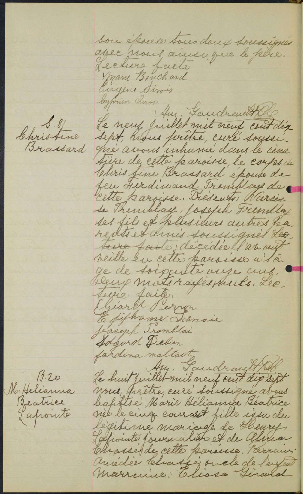 Les Bergeronnes, 1889-1922, Archives nationales à Sept-Îles, Fonds Cour supérieure. District judiciaire de Baie-Comeau. État civil, (09N,CE902,S8).