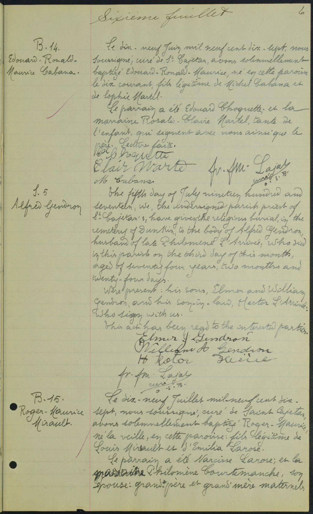 Saint-Cajetan-de-Potton, 1900-1921, Archives nationales à Montréal, Fonds Cour supérieure. District judiciaire de Bedford. État civil, (06M,CE611,S15).