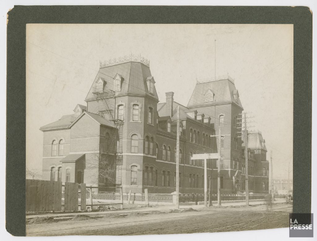 - Un document montre l'extérieur de la gare Bonaventure, un incendie près de la vieille gare et un bâtiment probablement de Pointe Saint-Charles jouxtant une voie de chemin de fer.