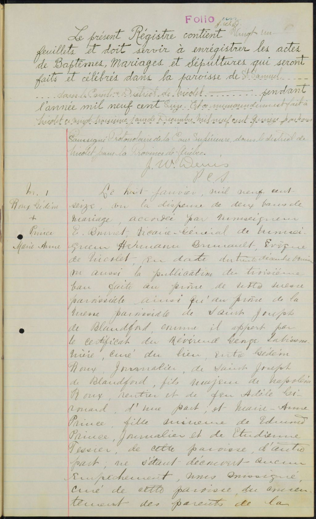 Saint-Samuel, 1894-1920, Archives nationales à Trois-Rivières, Fonds Cour supérieure. District judiciaire de Trois-Rivières. État civil, (04T,CE401,S56).