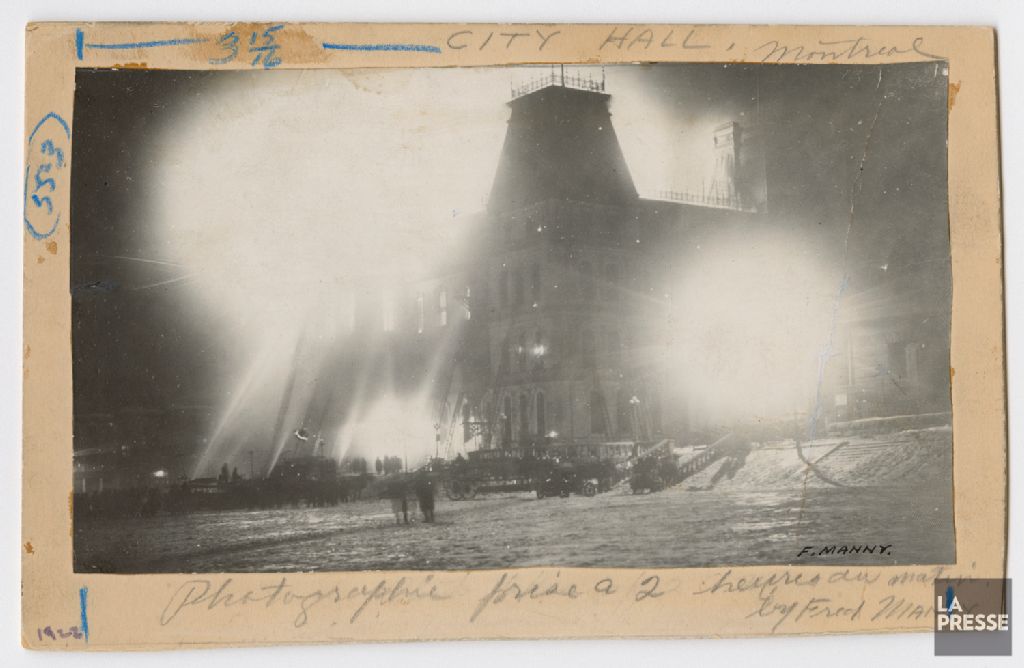Incendie à l'hôtel de ville de Montréal, 1922, Archives nationales à Montréal, Fonds La Presse, (06M,P833,S3,D499), Photographe non identifié.