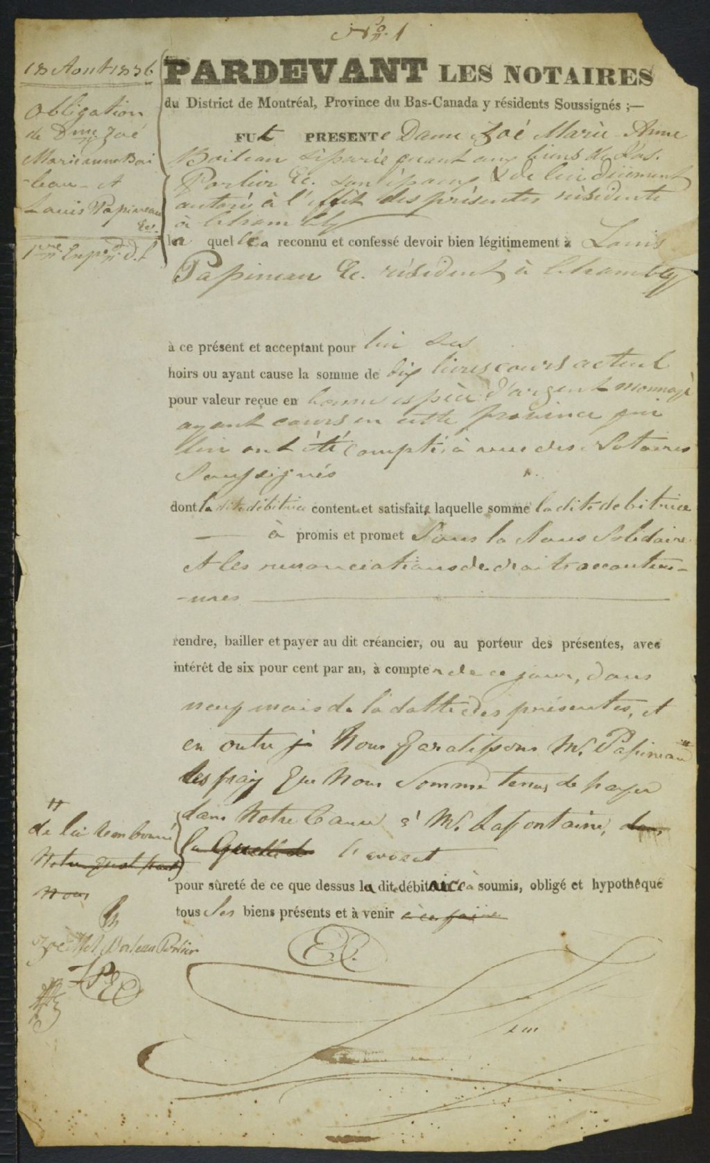 - Cette série témoigne de la vie quotidienne d'une partie de la population établie sur le territoire des Cantons-de-l'Est et des actes légaux enregistrés chez le notaire Edmond Clément. La vie économique et les moeurs et coutumes du XIXe siècle dans les Cantons-de-l'Est peuvent être étudiés à l'aide de ces documents. De plus, les liens familiaux décrits dans les actes peuvent aisément servir pour des études généalogiques. Ces minutes notariales sont issues d'une clientèle provenant de Chambly, Saint-Valentin, Saint-Athanase, Montréal, Ormstown et Farnham.Cette série contient une sous-série d'actes notariés comprenant 6340 minutes notariales, une sous-série pour le répertoire ainsi qu'une pour les index. Le répertoire est relié en une seule pièce et donne des références sur les parties impliquées dans les actes. Les documents se présentent sous une forme normalisée, c'est-à-dire selon un modèle sériel qui renferme des informations sur les [...]