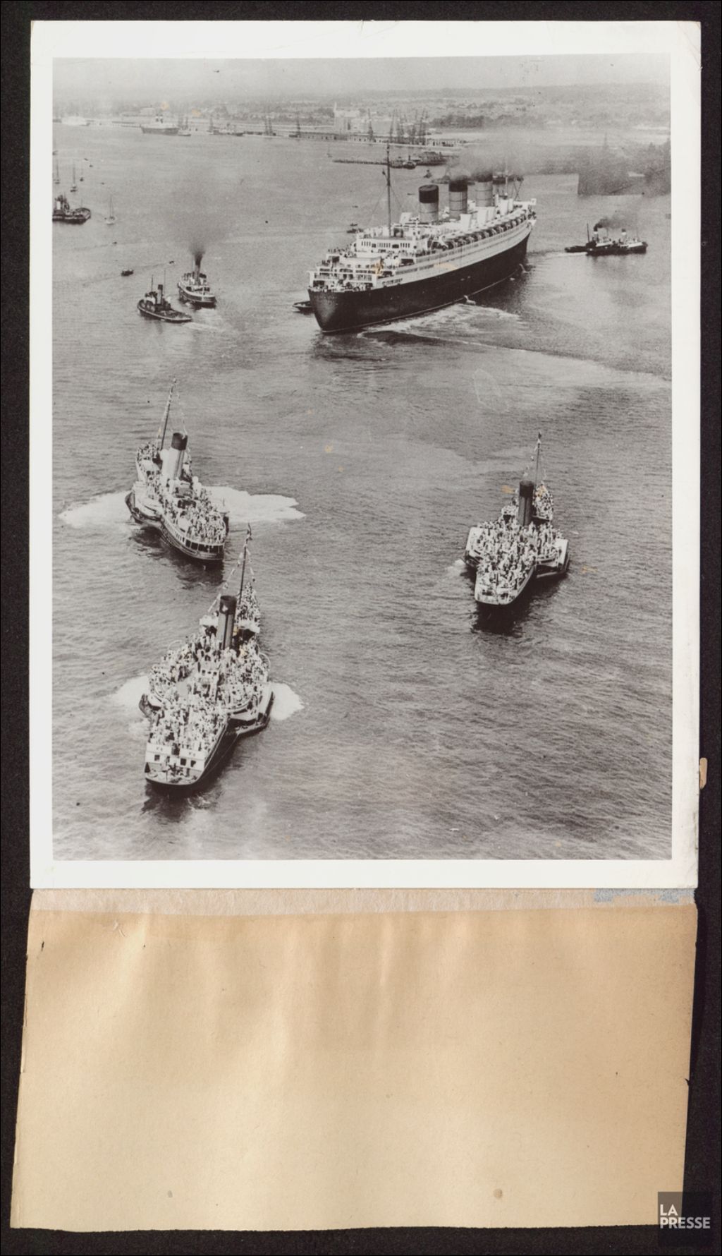 - Le dossier montre notamment une vue aérienne du paquebot remorqué hors du chantier naval de Clydebank en Écosse; des ouvriers peignant la coque; les hélices; le paquebot illuminé en célébration du mariage royal entre le Duc Henry de Gloucester et Alice Scott; et l¿arrivée du bateau à Southampton, de retour de son premier circuit transatlantique
