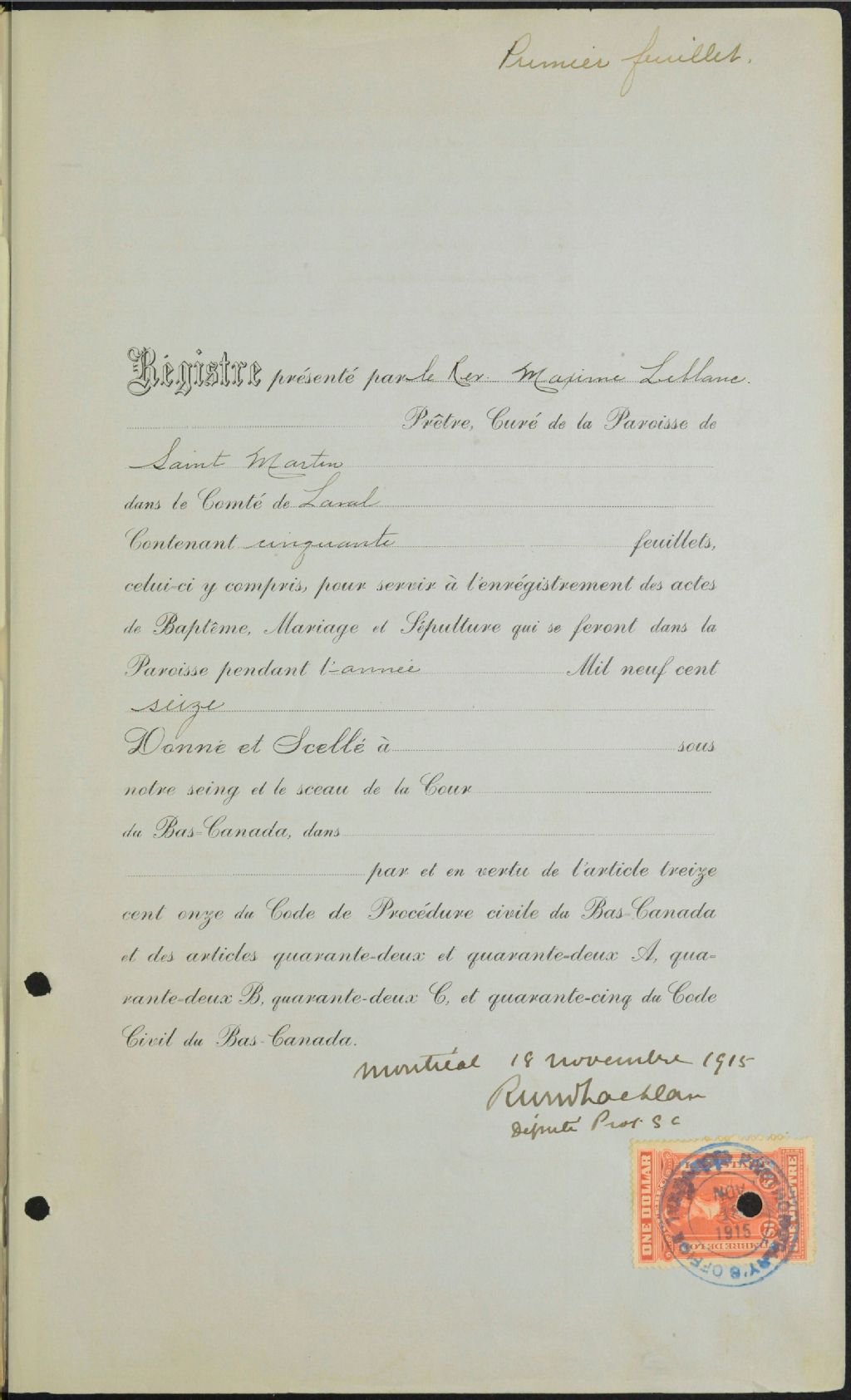 Saint-Martin, 1774-1922, Archives nationales à Montréal, Fonds Cour supérieure. District judiciaire de Montréal. État civil, (06M,CE601,S48).