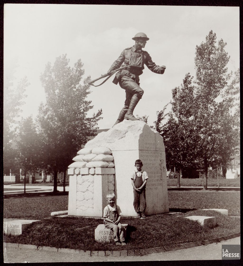 - Le document montre deux garçons devant un monument à Saint-Lambert, un groupe de personnes devant le monument du parc Lafontaine (en l'honneur des soldats français de Montréal) et le monument de la Division Sainte-Anne au parc Marguerite-Bourgeoys.