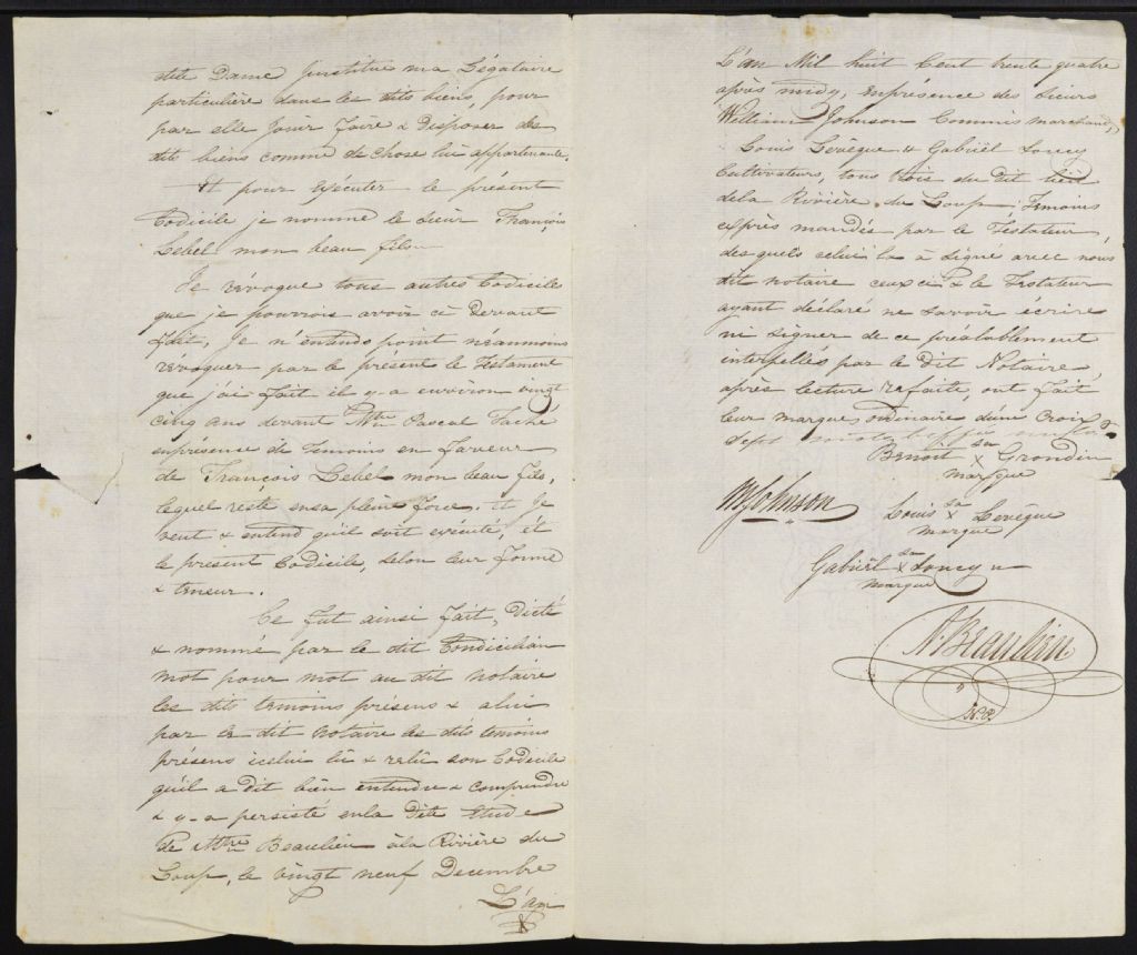 Alexis Beaulieu, 1833-1860, Archives nationales à Rimouski, Fonds Cour supérieure. District judiciaire de Kamouraska. Greffes de notaires, (01R,CN104,S15).