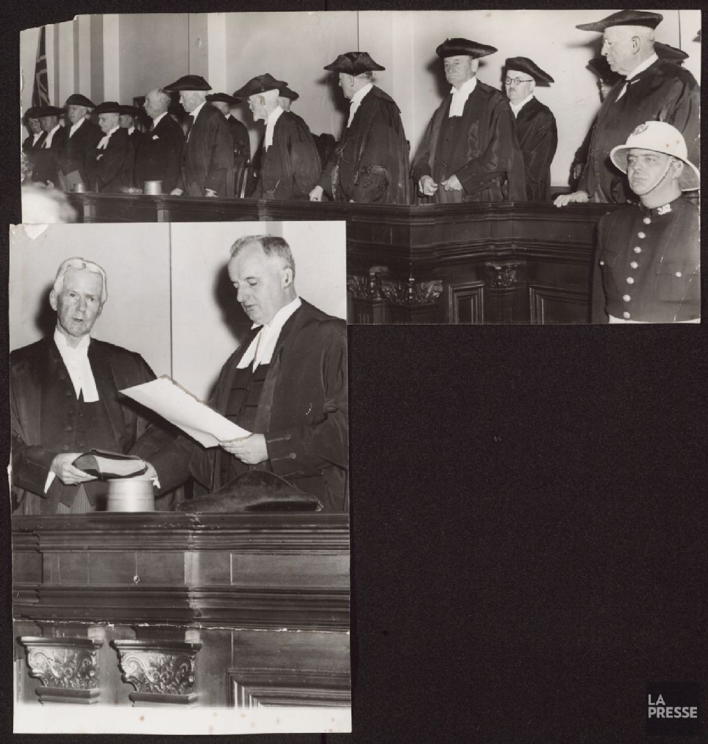 - Le dossier illustre l'ouverture des tribunaux en présence notamment des juges Joseph Archambault, E.-Fabre Surveyer, Louis-Philippe Demers, Louis Boyer, Alfred Forest et Albert Sévigny