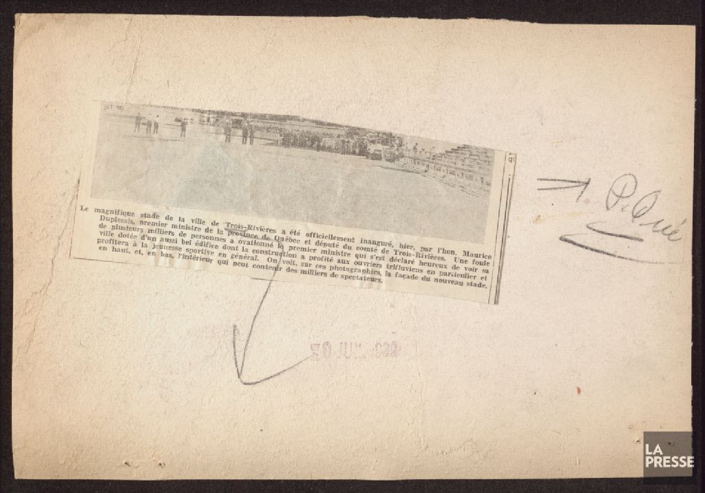 - Le dossier illustre notamment le monument aux soldats trifluviens morts durant la Première Guerre mondiale; le cénotaphe en l¿honneur des soldats morts lors de la Seconde Guerre mondiale; le maire Louis-Philippe Normand remettant la clef de la ville à l¿Union canadienne de raquetteurs; le boulevard Turcotte; la façade et l¿intérieure du stade lors de son inauguration; le sanatorium Cooke; et une foule de la Jeunesse agricole catholique canadienne assistant à une messe pontificale