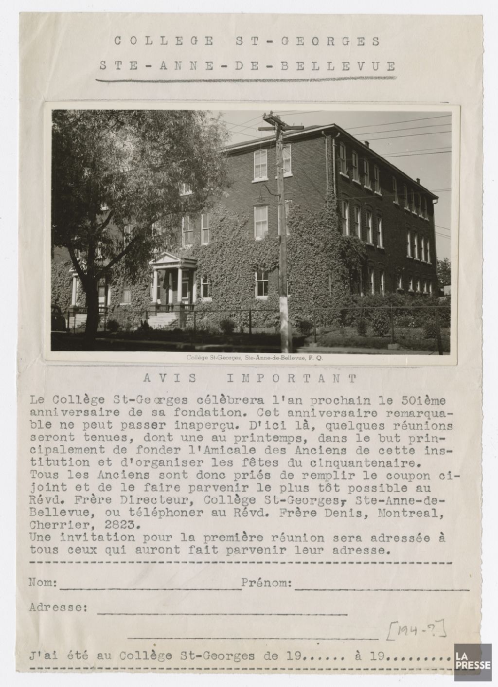 - Le dossier porte, entre autres, sur les célébration du 50e anniversaire de la municipalité. Le dossier montre Joseph-Conrad Chaumont célébrant une messe pontificale au parc Harpel; et le comité organisationnel dont Antoine Lamarche, Esdras Lépine et l¿abbé Jean Legault. Plusieurs photographies sont en lien avec les services de police et d¿incendie et montrent notamment des officiers avec une voiture de patrouille pouvant se convertir en ambulance; le chef Lépine près d¿une voiture à échelle qu¿il a lui-même modifiée; et divers outils et instruments utilisés par ces services. Le dossier montre aussi l¿ancienne église où fut baptisé l¿abbé Proulx; le couvent Notre-Dame; des gens profitant des berges et des cours d¿eau; le collège Saint-Georges; le pont de l¿Île-Perrot en cours de construction; la route reliant Montréal et Sainte-Anne-de-Bellevue en cours de parachèvement; et le monument du collège Macdonald en l¿honneur de ses élèves et professeurs morts dans les deux Guerres mondiales