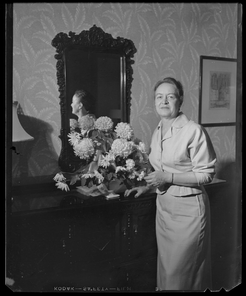 Mme John Diefenbaker interviewée par Darquise Parent, 21 juin 1957, Archives nationales à Gatineau, Fonds Champlain Marcil, (07H,P174,S1,D11835), Marcil, Champlain.