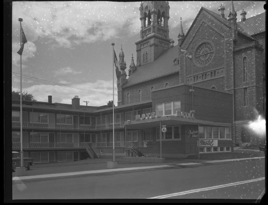 Motel Fontaine-Bleu, 16 juillet 1957, Archives nationales à Gatineau, Fonds Champlain Marcil, (07H,P174,S1,D11973), Marcil, Champlain.