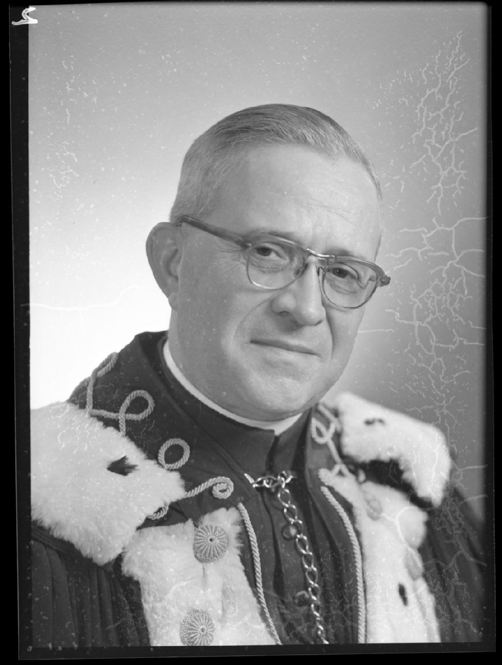 Père René Lavigne, 7 février 1958, Archives nationales à Gatineau, Fonds Champlain Marcil, (07H,P174,S1,D13473), Attribuée à Champlain Marcil.