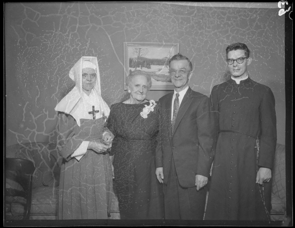 Première messe du Père Dallaire à l'Église Notre-Dame à Eastview, 8 février 1958, Archives nationales à Gatineau, Fonds Champlain Marcil, (07H,P174,S1,D13491), Attribuée à Champlain Marcil.
