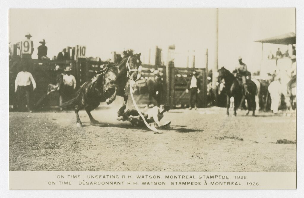 On Time unseating R.H. Watson, Montreal, Stampede 1926 = On Time désarconnant R.H. Watson, Stampede à Montréal, 1926