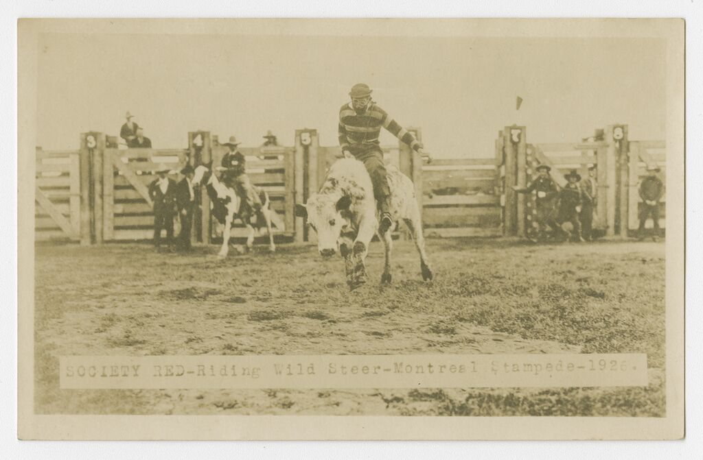 Society Red riding Wild Steer, Montreal, Stampede 1926